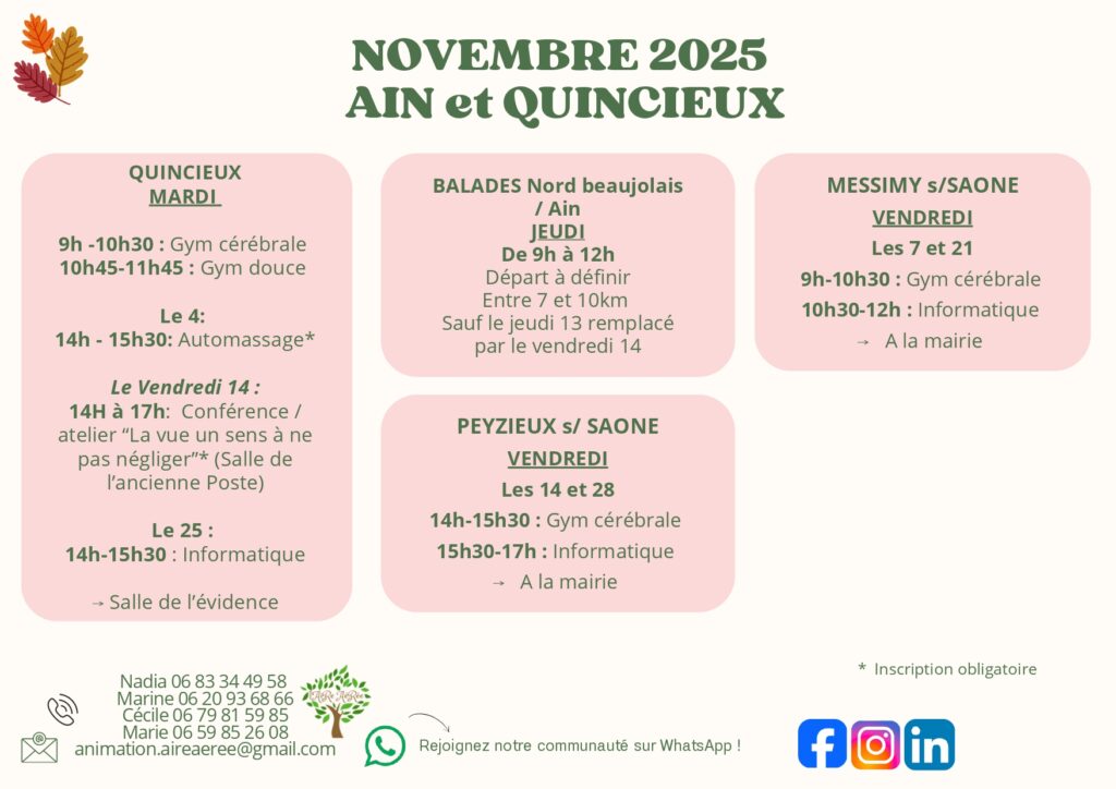 - Gym cérébrale : les mardis de 9h à 10h30, salle de l'Evidence
