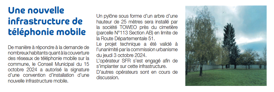 Une nouvelle infrastructure de téléphonie mobile a été installée sur notre commune ce jeudi 6 février.