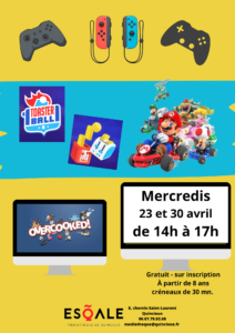 Venez vous amuser sur la console de la médiathèques et jouer à TOASTERBALL, OVERCOOKED et MARIO KART !