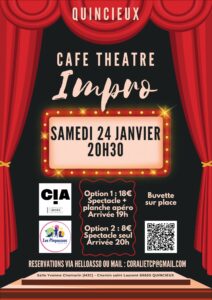 Soirée café Théâtre impro le samedi 24 janvier à 20 h 30 salle Yvonne Chemarin