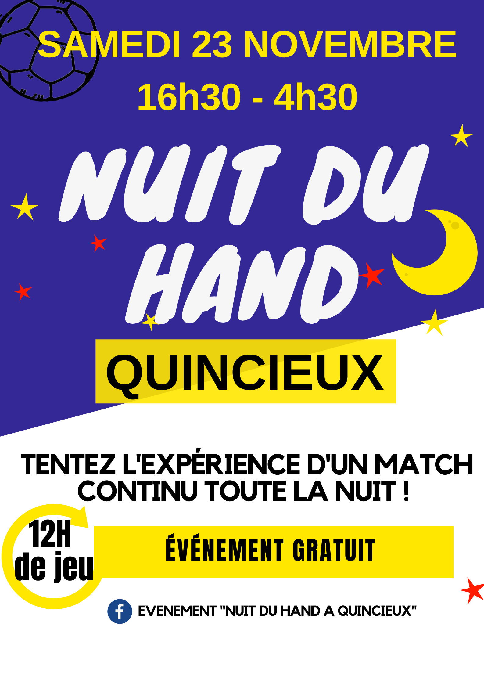 Nous vous attendons pour la nuit du hand le 23 novembre à partir 16h30