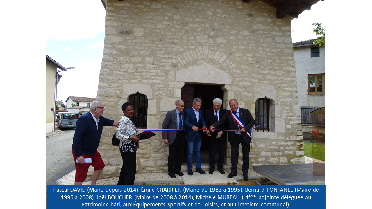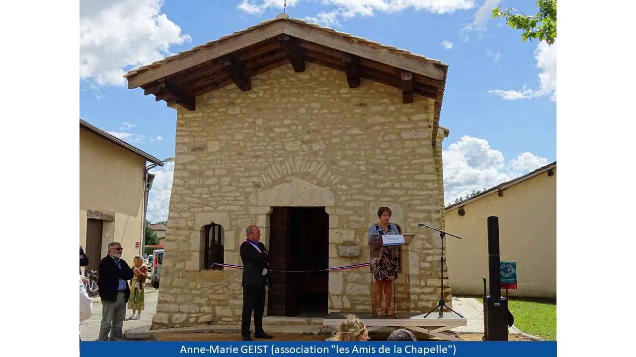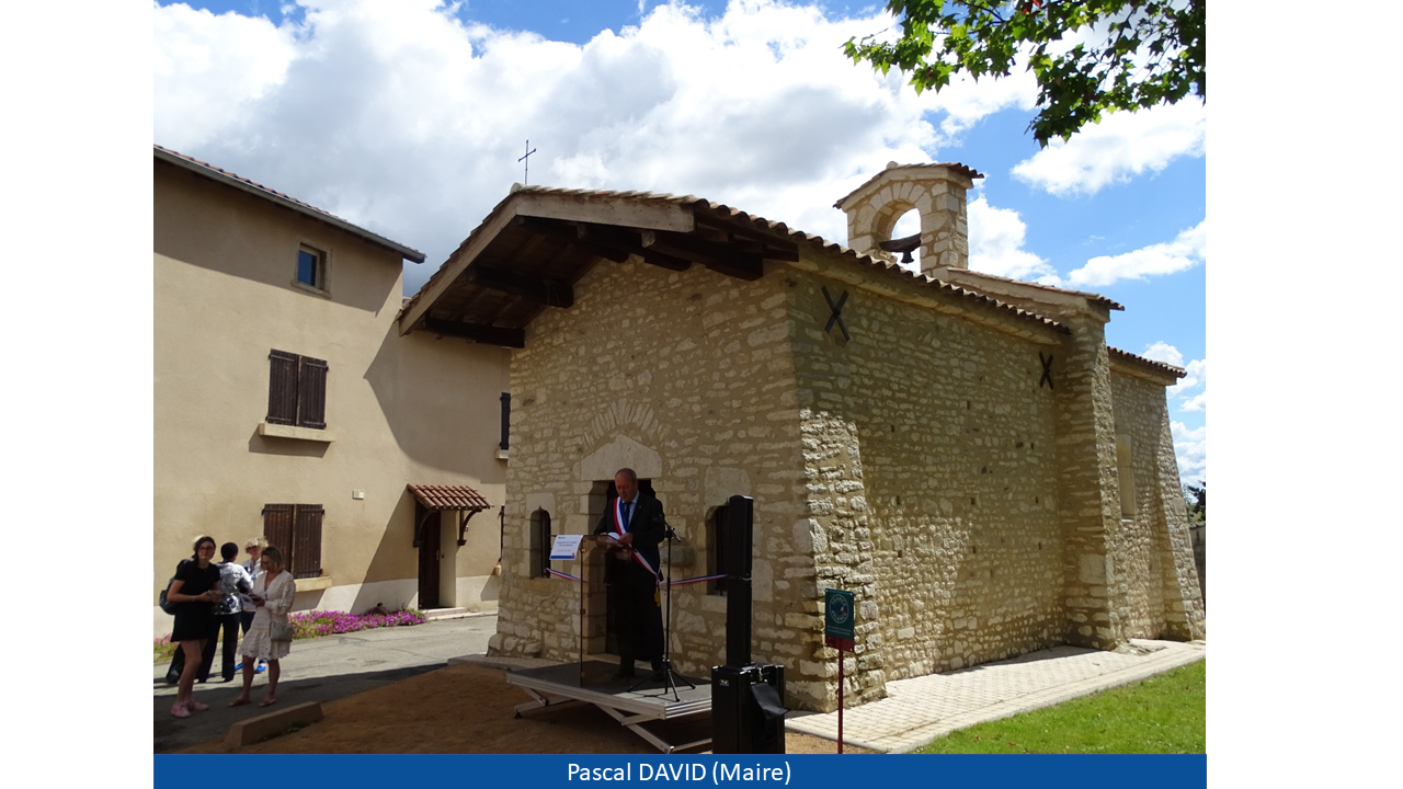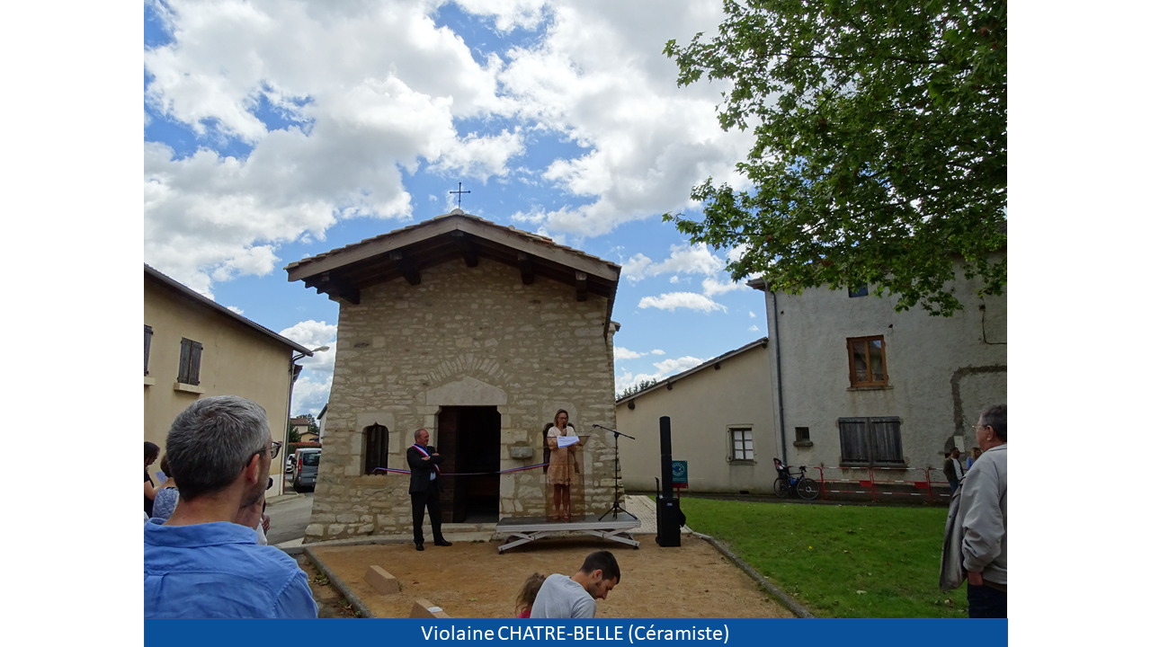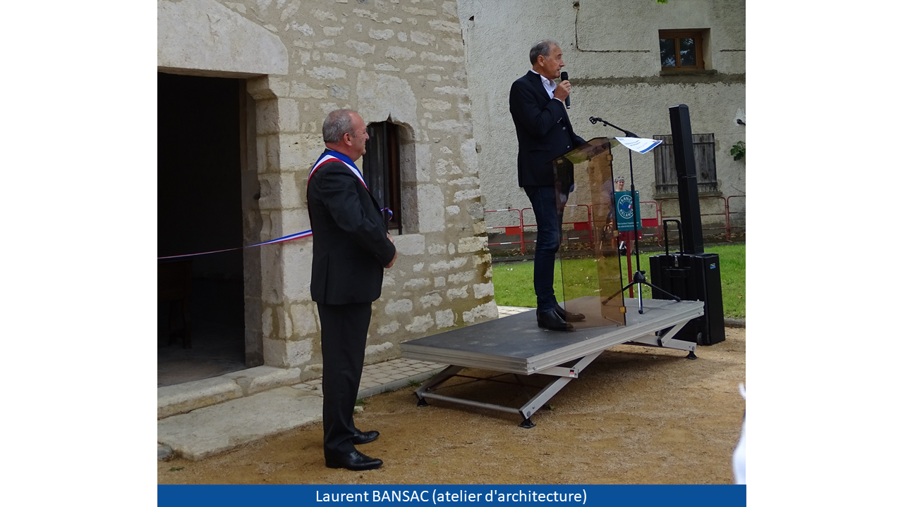 Monsieur le Maire a pu, à la suite de son discours, donner la parole à Monsieur Claude SORDET (délégué départemental de la Fondation du Patrimoine), Monsieur Laurent BANSAC (architecte ayant supervisé les travaux), Madame Anne-Marie GEIST (membre de l'association les "Amis du patrimoine") et Madame Violaine CHATRE-BELLE (céramiste dont vous pouvez observer les oeuvres au sein de l'édifice). La cérémonie s'est par la suite poursuivie au "Verger de Nadine" pour un verre de l'amitié offert par la municipalité.